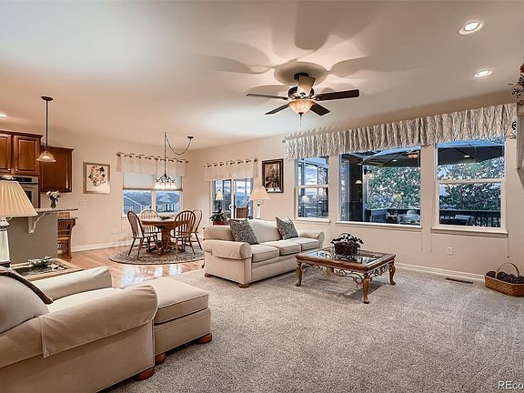 ***Ranch Style Home on Premier Lot in Heritage Todd Creek*** This former model home within this active adult community has plenty to offer with a 3 bedroom/3 Bathroom floor plan showcasing a finished walkout basement w/ wet bar and beautiful Everstone patio, tastefully updated Marquis Serene Gas Fireplace, new plantation shutters/window treatments, new stainless steel kitchen appliances, eat-in kitchen area with granite countertops, new carpet on the main level, updated wrought-iron railings, freshly painted interior/exterior, relaxing sun room w/ amazing views, spacious Trex deck patio on main level to enjoy and entertain day or night, interior solar tube lights for at night, and just an overall sense of pride of ownership with plenty to enjoy! This premium lot almost sells itself with amazing golf course AND mountain views complete with gorgeous sunsets, beautiful landscaping w/ plenty of shade trees, within walking distance to the Todd Creek clubhouse with plenty of activities and entertainment to enjoy throughout the year, great sense of community within the neighborhood while also enjoying the peace and quiet this location offers, and sits next to an adjacent lot that won’t be built on for added sense of space between neighbors to highlight a few. You can also check the new furnace, A/C, roof, and water heater off the list as all of those items have recently been handled as well. This is a true move in ready home that has so many boxes checked that it doesn’t get much better than this in a great location within a golf course community! Come take a look and make this amazing home yours by scheduling a showing today!