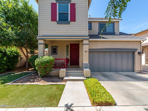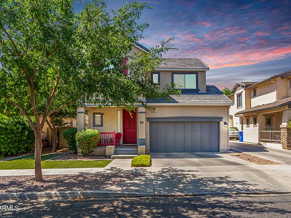 Classic American Dream Curb Appeal complete with cheerful pops of red and lush flower bed and green turf. Community amenities like pools, parks, splash pad, and more. Marley Park is where you want to be and this opportunity is your best bet to get in before Fall. This home is the ideal size with no wasted space in this 3 bedroom, 2.5 bathroom home featuring a FULL SIZED, finished backyard with covered patio. The downstairs is complimented by new wood tile flooring throughout and a neutral color palette with beautiful natural light. The kitchen overlooks the backyard, open living space, and the side patio with a firepit - perfect for entertaining or keeping an eye on kids/pets. Master suite complete with dual sinks and a soaking tub. Ample space for all your needs! Don't miss your chance!