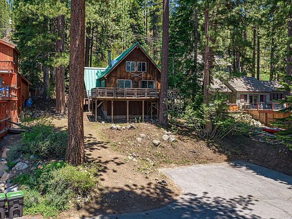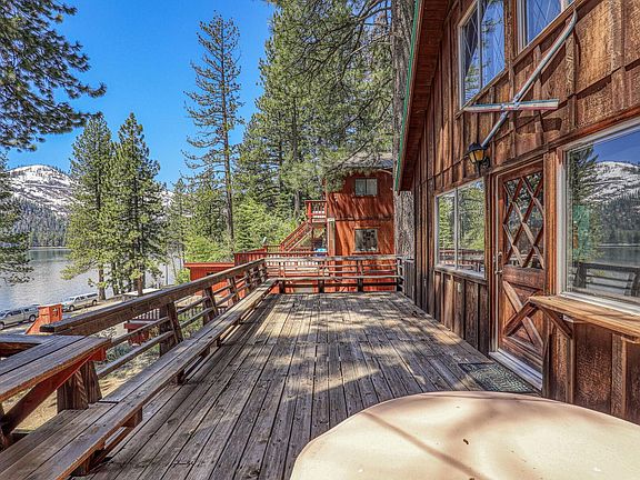 Donner Lake family home first time ever on the market. Unobstructed views of Donner Lake from a private driveway of select homes, and a stone's throw away from the lake. Walk across the street and choose from several of the infamous lake docks to enjoy views of Donner Summit and the amazing water. Two bedrooms and two full baths, with a large upstairs loft space broken into two separate areas with great light and views. The lot goes from the private drive back to Reed. With a new roof this cared for, classic and ageless home awaits more memories for the right family!