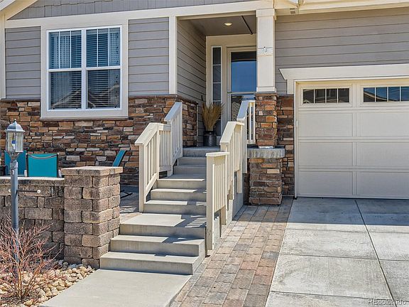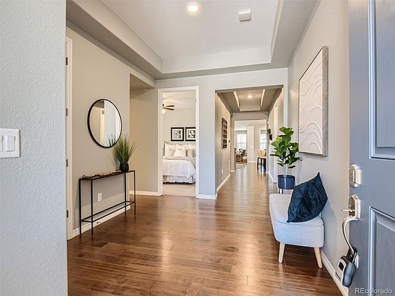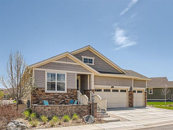 Beautiful Ascot Ranch plan by Lennar in this 55+ community! Amenities are wonderful in the Heritage Todd Creek community - welcoming to so many moving locals and lots of out of towners! HTC provides the best of Colorado living with all the latest technology. Heritage Todd Creek residents enjoy year- round access to a grand clubhouse with outdoor infinity pool, indoor pool, fitness center, gathering spaces, tennis and pickleball courts. There are many clubs , summer outdoor concerts, and an onsite restaurant where residents socialize often. Lennar provides energy efficient options and state of the art technology to seamlessly blended with luxury to make this home your forever home. Two bedrooms are located just off the front entry foyer along with a full bathroom and there is a den just off the kitchen. The open great room features a gas fireplace with gorgeous mantle and then access to a fabulous deck and back yard - perfect for entertaining. The stainless kitchen is done in classic white with a large island. Wake up to birdsong in the primary suite, which offers a tray ceiling, large walk- in closet, dual vanity, and stall shower. The unfinished basement is great for storage or future living space - you get to make it your own! The home has an oversized large three car garage. It could measure as having an additional tandem spot - but is excellent for a workshop or storage. This home is better than brand new as so many upgrades and finishes have been taken care of for you. In HTC you are close to dining, shopping, entertainment and other amenities. So much to see and do in this charming community – something for everyone. Easy commute to DIA, Downtown Denver, Golden, Boulder and beyond.