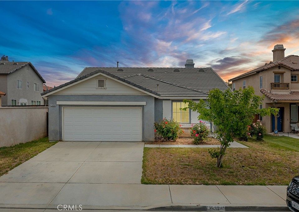 Don't miss out on this incredible opportunity to own this amazing, single-story home located in Moreno Valley Ranch!! As you enter the residence, enjoy the light and bright paint scheme throughout and the nice open floorplan. There are 3 bedrooms, plus an office/den that can potentially be converted to a 4th bedroom. There is a formal living and dining area that leads to the great open kitchen that features recessed lighting, plenty of cabinet and counter space, a dishwasher, range, built in microwave, pantry, and separate eating area just off the kitchen. The family room is located just off the kitchen and features a warm and inviting fireplace. The bedrooms are generously sized and the master bedroom features a private sliding glass door, walk in closet, and an en-suite master bathroom with dual sinks and a tub/shower combo and more. There is also an indoor laundry area with extra storage cabinets. The back yard is generously sized and can accommodate a variety of options!! The HOA also has incredible amenities including a 35-acre lake, large community pool, fitness centers, large resident only recreation center, and both private and public parks within the community. Act now, before it's too late!