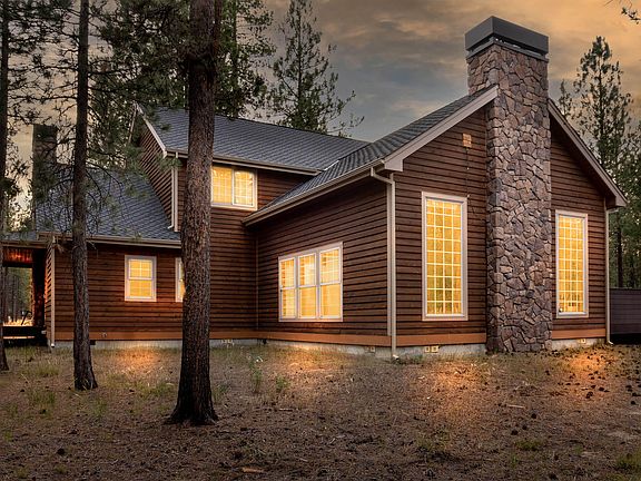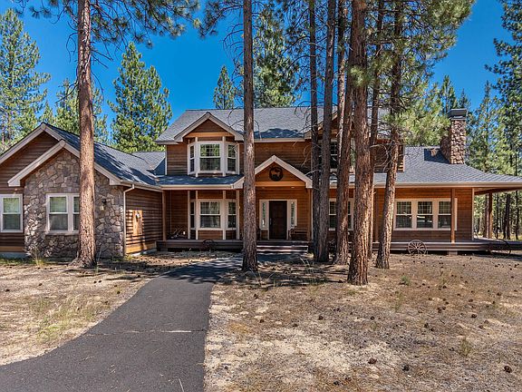 An inviting, spacious home tucked within a private, wooded 1.66 acre lot ten minutes from La Pine. Peace and serenity are immediate as you approach this like-new custom home, which has received minimal wear. Designed by the owner, no detail was overlooked. The beauty of the natural landscape is let in by expansive windows in the living room, the great outdoors can be enjoyed from the comfort of an exterior deck, and warmth is abundant next to two fireplaces during the winter months. Maximizing livability, this well appointed home features wood flooring, vaulted tongue and groove ceilings, solid core doors, and GE Profile appliances. Main floor living provides a primary suite with a walk-in closet. Take advantage of being on the edge of the Deschutes National Forest where Central Oregon's beauty can be enjoyed every day!