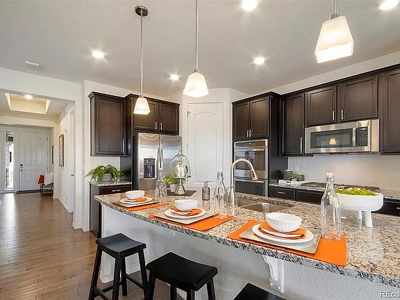 STUNNING mountain views at this home located in the 55+ active community at Heritage Todd Creek, this home abounds with warmth and easy living. Enter into an open-concept main floor grounded by hardwoods and wrapped in a neutral color palette. The kitchen is anchored by a vast island topped with granite perfect for hosting and additional seating. Generous cabinetry and stainless steel appliances make this the perfect stage for the at-home chef. A gas fireplace offers a focal point in a living area with seamless outdoor access. Just off the living area is a sunlit primary suite with a walk-in closet and an en-suite bathroom the latter of which includes a wide vanity and a walk-in shower with a bench. The mudroom and laundry room offer amazing convenience. Complete with a beautiful guest bedroom and lovely study. This one level living home is perfect for our active adults. Outside, a low-maintenance yard surrounds a covered patio area. Situated in a coveted 55+ community, this home includes access to the clubhouse, pool, fitness classes and more. The clubhouse offers an abundance of activities, numerous clubs, a library, billiard tables, a fitness room, dance/aerobic room, indoor/outdoor pool, hot tub, tennis/pickleball courts and more. The community is complemented by a golf course and restaurant both are separate from the HOA and open to the public. Portable Tenant Screening Reports (PTSR): 1) Applicant has the right to provide West and Main Homes Property Management with a PTSR that is not more than 30 days old, as defined in 38-12-902(2.5), Colorado Revised Statutes; and 2) if Applicant provides West and Main Homes Property Management with a PTSR, West and Main Homes Property Management is prohibited from: a) charging Applicant a rental application fee; or b) charging Applicant a fee for West and Main Homes Property Management to access or use the PTSR. If applicant provides West and Main Homes Property Management with a PTSR: a) the PTSR must be available to West and Main Homes Property Management by a consumer reporting agency/third-party website that regularly engages in the business of providing consumer reports; 2) the PTSR must comply with all state and federal laws pertaining to use and disclosure of information contained in a consumer report by a consumer reporting agency; and c) Applicant certifies that there has not been a material change in the information in the PTSR, including the Applicant's name, address, bankruptcy status, criminal history, or eviction history, since the PTSR was generated. Listing Agent License # FA100096917 Owner pays water and trash. All other utilities are paid by tenant.