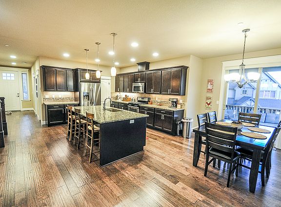 Immaculate energy efficient home with upgrades throughout. Bright open floor plan. Covered deck with bbq gas line off the main level. Large master suite with soaking tub, shower, and walk-in closet. Extra tall kitchen cabinets and large pantry. Huge 2nd floor family room. Four bedrooms upstairs and 1 bonus on main. Walk to Alberta Rider Elementary. Mountain / Valley Views.