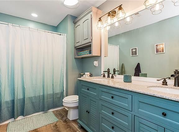 This beautiful home has a freshly painted exterior and tons of updates throughout to include new counter tops, new carpet and newer AC! The living room boasts an attractive fireplace & large windows for lots of natural lighting. Enjoy the large master bedroom suite with the walk-in closet and soaker tub. The finished basement with another full bathroom is a huge addition to the home! Located in a great neighborhood on a cu-de-sac, the big, fenced in backyard makes for the perfect gathering spot for family and friends! Call today for a private showing!