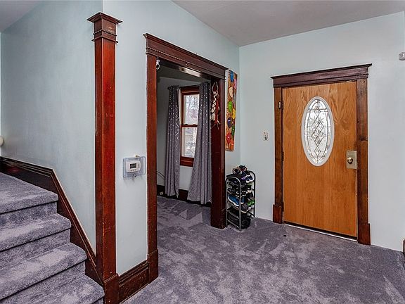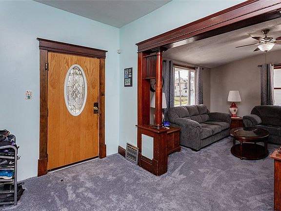 This two story home welcomes you with a great front covered porch, just in time for spring! Property features a double lot with two car detached garage and large concrete patio in back. Main level has been freshly painted and features nice sized living room with new carpeting on this level including the stairs. Bonus room that is perfect spot for an office or den space. Large formal dining area that leads to the kitchen with new counters and backsplash with lots of counter space and pantry. Upstairs you will find four good sized bedrooms and a full bathroom. Lower level has a finished room that could be non conforming bedroom and a 3/4 bath. Mudroom on back side of the home that leads out to large concrete patio and 20 x 24 garage with 220 electric. The roof was replaced in 2020 and newer windows on the main level, come take a look today! All information obtained from seller and public records.