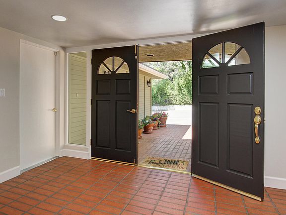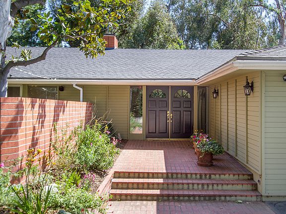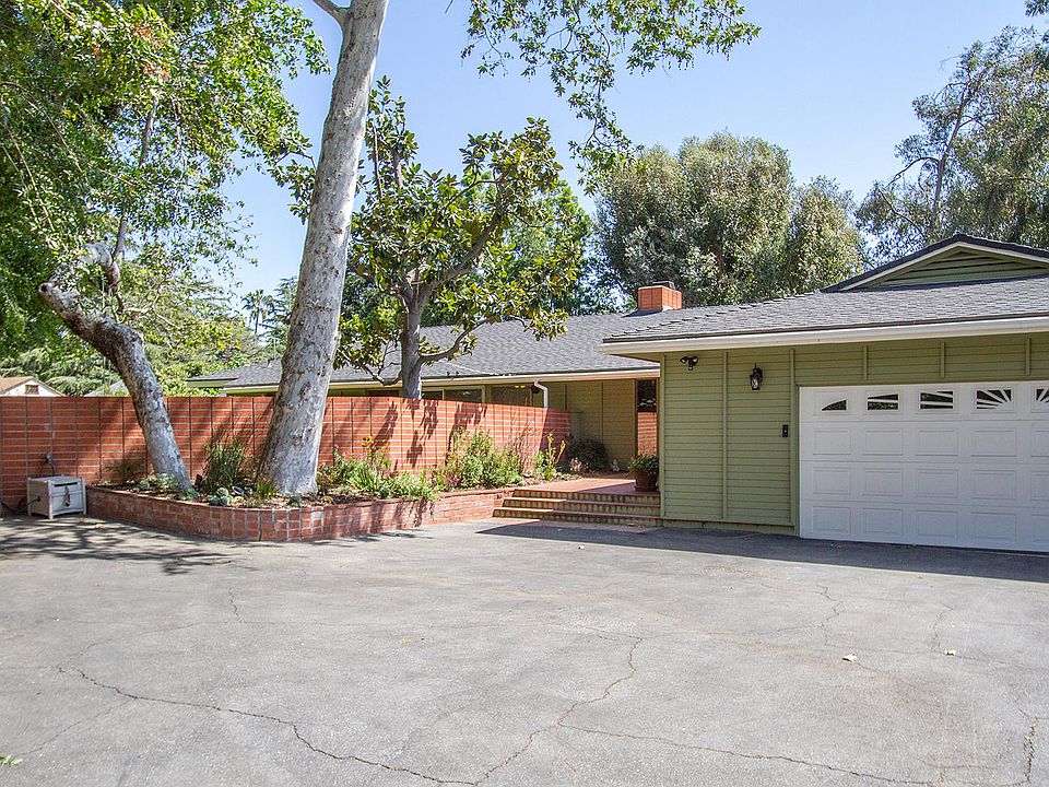 Views, privacy and mid-century design in the heart of Altadena's Country Club Area. This sophisticated oasis tucked away on a private road offers mountain and palm tree views, privacy, and a relationship with its natural setting that only mid-century modern architecture can provide. Built in 1963 this spacious home boasts open plan design, brick and hardwood floors, plentiful windows, a cook's kitchen and generous living area with fireplace that opens to an expansive entertainer's patio, grassy yard and apple, fig, plumb and lemon trees. The best in Southern California lifestyle, kitchen not only offers large center island with breakfast seating, double oven and solid surface counters but also lovely natural light from plentiful windows that showcase hummingbirds and palm trees against blue sky. Owner's suite with en-suite bath offers large tub, separate shower and lots of closet space. Two additional bedrooms are spacious, one offering a built-in desk. Don't miss this opportunity to enjoy life in the exceptional Altadena Country Club Area.