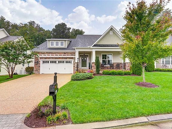 Spectacular Low Maintenance Craftsman home situated on a quiet cul-de-sac in sought after Parke at Saddlecreek! 3 bedrooms, 2.5 baths - including a 1st floor owner's suite! The main level features 9 ft+ ceilings, hardwood floors and an open and flowing floorplan. Double doors off the foyer open to a convenient 1st floor office. Formal dining room features tray ceiling, columns & built-in cabinets. Chef's kitchen w/ oversized island, amble cabinetry, granite countertops, stainless steel appliances and breakfast area. Kitchen opens to a 2-story family room with floor to ceiling stone fireplace. 1st floor master suite features tray ceiling, 2 roomy closests, and a spa-like bath w/ tiled shower, soaking tub, and dual sink vanity. 2nd level offers 2 bedrooms and a full bath w/ balcony overlooking the family room. Additional features include all new hardiplank siding (2020) screened porch with wooded views, aggregate patio, huge walk-in attic for extra storage, on-demand hot water heater. Convenient location just minutes to Short Pump, I-64 & I-288. No more yard work - the HOA takes care of it! Come see this home today - it won't last!
