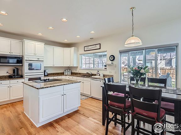 WOW-hurry not to miss this Quail Crossing beauty! Bright, south facing 2-story with 4 bedrooms, 3 baths, an oversized garage and over 4,200 sf of living area. The popular open concept floor plan invites you in with hardwood floors in the entryway, traffic areas and kitchen; main level family, dining & living rooms plus an office located next to the half bath offering flexibility for a main level, non-conforming bedroom if needed. The heart of the home is the chef's dream kitchen with tons of granite counter space, ample cabinets, a huge central island with a newer electric cooktop, double ovens, plus access and views of the beautiful back yard. The large family room features soaring vaulted ceilings, tons of light from the two story windows, and a gas fireplace. Retreat to the spacious primary suite featuring a gorgeous updated 5 piece-bath and big walk-in closet. Two of the three additional bedrooms offer walk-in closets, too, and the laundry room is well located for ease and convenience. You'll love spending summer evenings in the shade of the gorgeous covered patio and the privacy of the large back yard. The full unfinished basement offers ample storage, workout or play areas and room to grow with bathroom rough-in plumbing; radon mitigation system in place. This home is well maintained, upgraded and move-in ready with new/newer items including: refrigerator, microwave, garbage disposal, central a/c, class 4 roof, gutters. No metro district tax and low HOA! The quiet neighborhood is well located near schools, parks, trails, Union Reservoir, the new hospital, golf courses, shopping and offers easy access to I-25. Buyer to verify all. Schedule your showing today!
