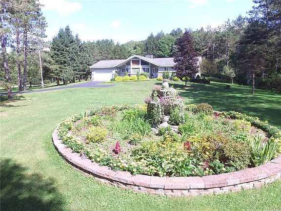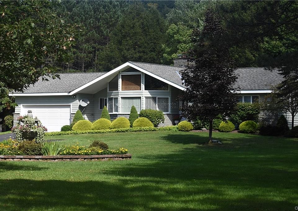 Custom built ranch home with 85 acres of open landscaped grounds and wooded surroundings with stream. A 3 stall barn for horses with pasture and dog kennel with fencing. Upon entering the home the front and rear glassed areas form impressive angle windows rising to the gables peak. Massive blue stone fireplace with conversation pit can be enjoyed from any point of the living/dining room. Eat in the beautiful galley kitchen or formal dining room overlooking the views of peacefulness. Full finished basement with family room. Attached two stall garage. Land is on both sides of road. Cooperstown or Laurens School District. One owner.