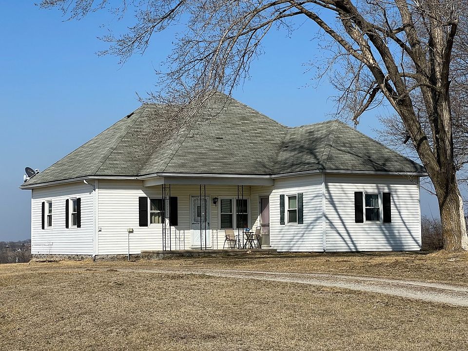 Live Auction! The price shown ($100,000) is the starting bid and is not a listing price! Home will not sell before the auction - Home sells Live on Friday, April 22nd, 2022 @ 12 NOON. Auction held at 902 Randolph in town of Glasgow (location of other home to be auctioned that day). Absentee & phone bidding also available. +/- 25 Acres with quaint farm home, outbuildings and fantastic country views overlooking Historic Glasgow, MO. Home and Improvements - A 1,343 sq ft home consisting of 3 bedrooms and 1 bathroom, LP Gas Furnace, Central Air, Water - Public water supply #2 - Front and rear covered porches, 24x30' 3 sided building (garage) located in the northwest portion of the backyard, also large 35x52' (11x52' open lean-to) machine shed and a 35x71' concrete pad (old hog building floor) are located in the southeast portion of the property surrounded by large graveled lot. Land/Acreage- Mostly open acres 14+/-, Loess wind blown soils, rolling and sloping currently in pasture w/ perimeter tree lines and few draws, a half acre pond is located near center of the farm.