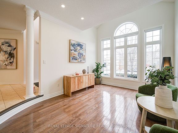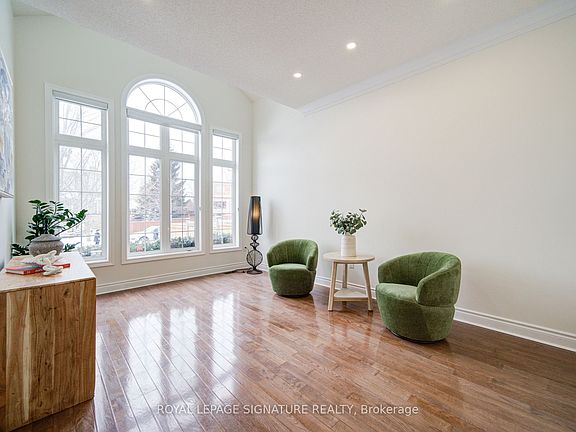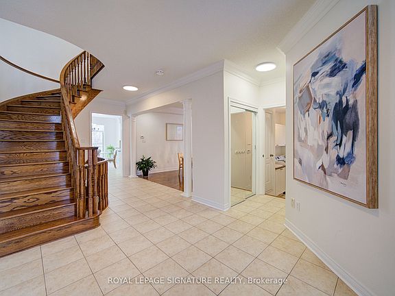 Welcome to Oakville's prestigious Joshua Creek community, where convenience, luxury, and top-rated schools come together. This stunning Ballantry-built home sits on a premium deep lot with approximately 60' width across the rear, offering exceptional privacy and a professionally landscaped backyard with cobblestone-style patio, towering 28' Blue Spruce trees, maple, ornamental pear trees, and large cedars. Approximately 3,540 sq. ft. of luxurious living space features an upgraded fiberglass front entry door, hardwood flooring throughout the home, 9' main floor ceilings, crown mouldings, and a curved oak staircase. The main floor features a private office, a sunken formal living room with tapered columns, crown mouldings, and pot lights, and an elegant dining room with coffered ceiling and hardwood floors. The extensively upgraded and modified kitchen boasts maple cabinetry, extended-height upper cabinets, granite countertops, travertine backsplash, stainless steel appliances, a breakfast bar, and a walk-out to the breakfast area. The open-concept family room, anchored by a gas fireplace, completes this level, providing a perfect space for family gatherings and entertaining. The second floor features a spacious primary suite with a spa-inspired ensuite, including a luxurious soaker tub and a large walk-in closet. Three additional bedrooms include one with a private ensuite, providing comfort and convenience for family or guests. An exceptional home offering outstanding location, privacy and quality craftsmanship.