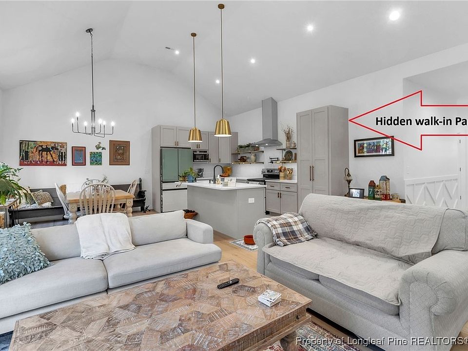 Welcome to 1534 Delaware Place! This incredible single-story home is in one of Sanford’s premier communities, Carolina Trace. Upon arriving at the property, immediately notice the privacy and absence of through traffic. The board and batten style siding contrasted by black gutters and attached two-car garage are sure to impress. As you enter the home into the wide entry way, you will be greeted by stylish millwork, high ceilings, LED lighting, and LVP flooring which is throughout the home; no carpet in this one! With a split 3-bedroom, 2.5 bathroom open-concept floorplan, this is perfect to accommodate anyone comfortably. The 2 spacious secondary bedrooms are serviced by a jack & jill bathroom with dual vanities, tiled tub/shower combo with an additional power room for the daily visitors. Further into this contemporary designed home is the living room, kitchen, and dining area. The vaulted ceilings, large windows, and abundant lighting make the space feel free, light, open, and private; all at the same time. With the kitchen featuring quartz countertops, a pot filler, vented hood, eat at island with sink and dishwasher, AND…..a HIDDEN WALK-IN PANTRY, you’ll quickly realize the level of elegance and detail that come with this home. The large primary suite continues the theme of elegance, quality, and detail with a custom walk-in closet, tray ceiling, dual vanities, and a tiled shower with rainfall shower head. Climate control isn’t an issue with this home as it features a sealed crawlspace and spray foam insulation in the spacious attic! This home is located in the Hidden lake section of Carolina Trace which includes a community pool, tennis courts, a marina, and a fishing pond. Carolina Trace itself has two golf courses designed by the well-known Robert Trent Jones, a 315+ acre lake great for fishing, kayaking, and boating, a 24-hour gated guarded community, well-centered between Raleigh, Pinehurst, and Fort Bragg area. Shopping is within just minutes with a First Health medical facility within 15 minutes that offers everything from primary care to specialty clinics. A country club membership is optional and has a lot to offer; a 24-hour accessible gym, a restaurant, additional pool, pool side bar, event rooms, pro shop, a pub, more tennis courts, and great company.