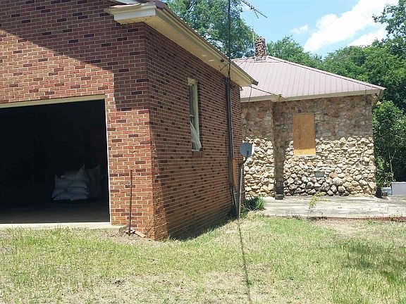 'RANCH STYLE COUNTY STYLE BRICK HOME" Interior in need of updating, windows are boarded and will need replaced, water is not presently on; however electricity is operating. Acreage to be determined by survey which will be paid for by seller. Fuel tanks(above ground) and equipment to be removed from property. Cement building located behind home(Egg House), all items to be removed by seller. Bring your renovation abilities and make this your dream home....Interior appears to have original hardwood floors under carpet Closets lined with cedar. Spacious kitchen with breakfast area.Central HVAC. Being sold as-is, seller not responsible for any warranties, guarantees, inspections or repairs. Home will qualify for cash or conventional financing only.