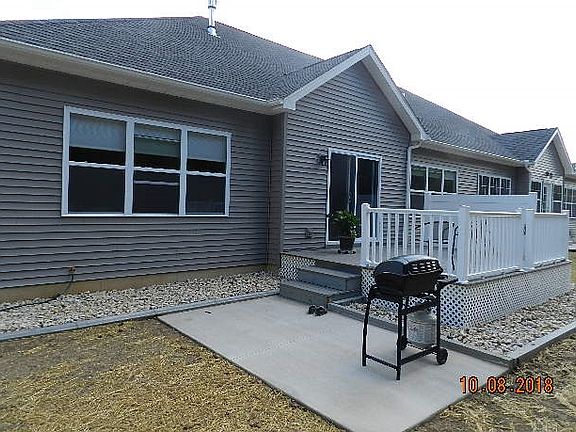 Newly built villa with 2 bedrooms, and 2 baths. Master bath has walk-in shower, double vanity and walk-in closet, 2nd bath has bathtub/shower combo. Open concept with vaulted ceilings, gas fireplace, breakfast bar, dining room and laundry conveniently located off the kitchen with built-in ironing board. Carpet, laminate and ceramic flooring, solid surface counter tops. Full unfinished lower level with 9 foot ceilings and sump pump. Open composite deck off the living room with small privacy fence. All Frigidaire appliances, Electrolux Front Load Washer and Dryer, built-in Ironing Board, and Kinetico 2060 Premier water softener remain. Custom concrete landscape edging, newly seeded yard. Move in ready!!