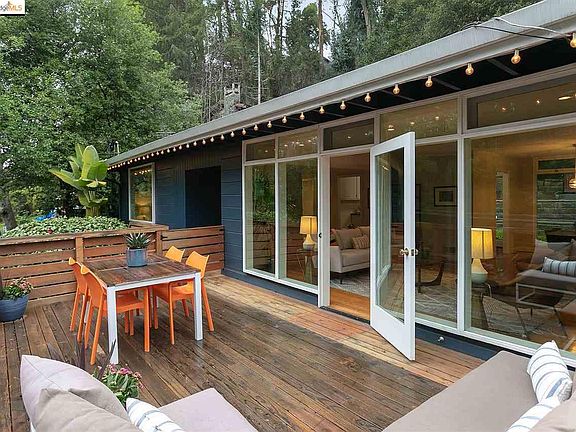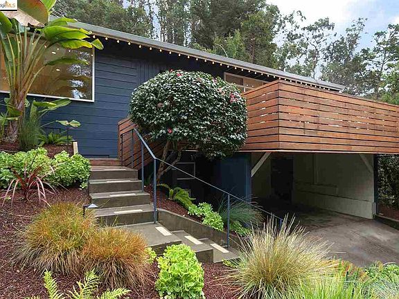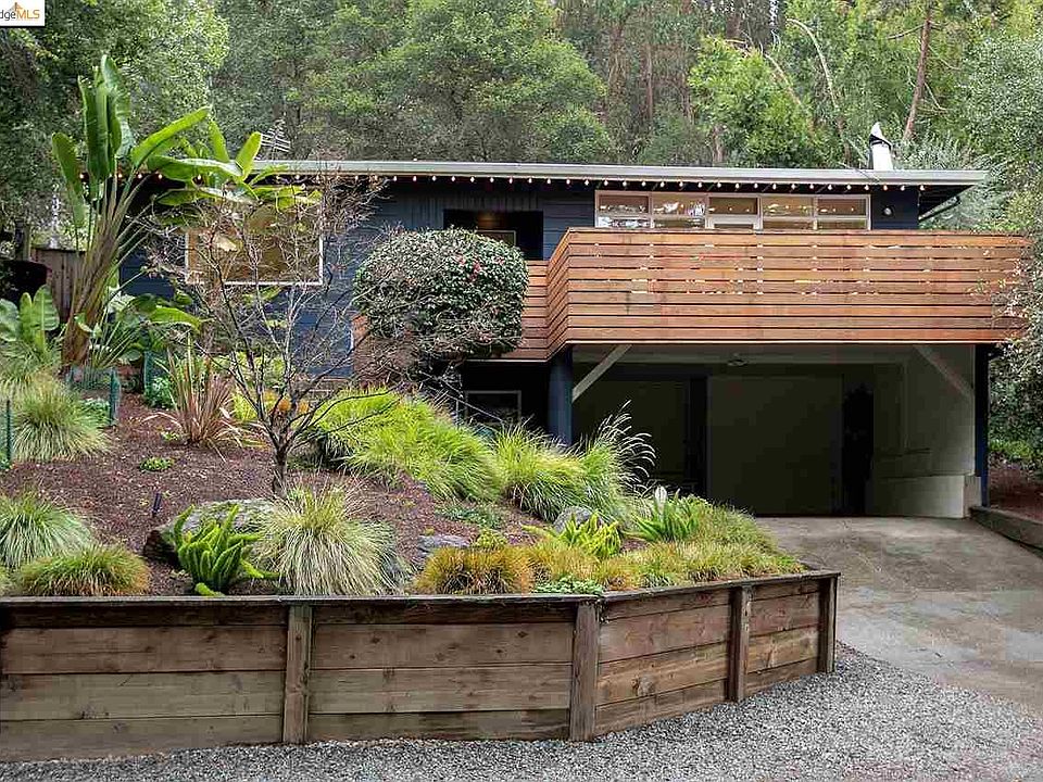 Leave the car at home to grab your morning coffee! This stylishly updated two bedroom mid-century is nestled on nearly a ¼ acre of park-like grounds that feels worlds away from the conveniences that are just blocks from the front door. Walls of glass, abundant natural light, random plank wood floors, seamless indoor/outdoor living all on 1 level & privacy combine to create a zen-like retreat. Enjoy the warmth from the fireplace in the spacious living room or follow your guests out to the entertaining deck for cocktails under the stars. Host an elegant dinner party in the adjoining dining room with floor-to-ceiling windows. The updated kitchen enjoys a five-burner gas range, stainless appliances and opens to the rear grounds. 1 bath & 2 bedrooms including a master with 3 closets & easy access to the hot tub for a relaxing soak. Plenty of room to play in the expansive backyard. Just a couple of blocks to Montclair park, library, shops, restaurants and public transit. Lg carport - 2 cars
