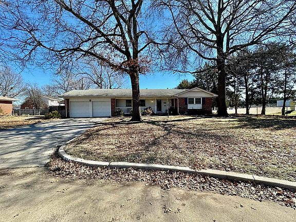 Sprawling one story, ranch style home with 2 bedrooms, 2 baths and 2-car garage. All new vinyl windows and sliding glass door! Interior features include an open living room with woodburning fireplace and a gas starter, lots of closet space and hardwood flooring (underneath carpet too). Kitchen boasts a large walk-in pantry, refrigerator, dishwasher, and cook top with a wall oven. Master bedroom features double closets. Exterior amenities include a wood/chain link fencing, large yard, covered patio, sprinkler system, and a shed. Mostly full brick home with some vinyl siding. HVAC was replaced in 2015 along with a newer hot water heater. Very solid home and ready to move into!