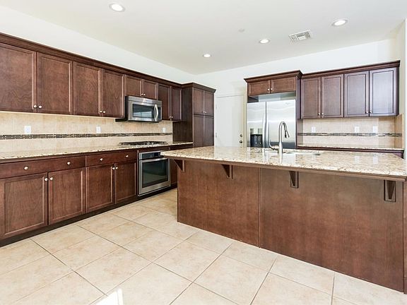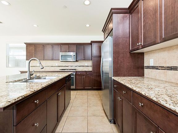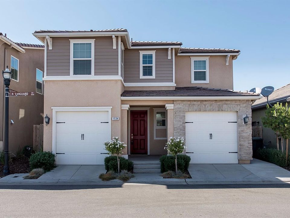 Located in the prestigious Harlan Ranch development this 3-bedroom 2.5 bath home is a great buy in Clovis Unified School District. The entry opens into a large family room and beautiful kitchen. The family room offers a gas fireplace, overhead ceiling fan, and surround sound speakers in the ceiling. The kitchen has dark wood cabinets, stainless steel appliances, a gas cook top, tile back splash, and granite counter tops. In the center of the kitchen is a huge island complete with a breakfast bar. Rounding out the first floor is a practical bath. Upstairs are the 3 bedrooms. The master bath has a spacious bathtub, separate shower, and double vanity. The backyard is very low maintenance with lots of concrete and durable cinderblock fencing. You will love the abundant number of amenities this community offers; a sparkling swimming pool, lush parks, walking tails, community events, and much more. Come see this adorable house today!