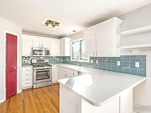 Your Dream Home. Make sure you watch the YouTube video. Click on "Virtual Tour" below. >Completely updated with a magnificent designer touch. Lighting is exquisite. Updated fresh feel. >Kitchen enjoys all new stainless steel appliances, Corian countertops, Updated cabinets with crown molding, beautiful hardware and faucet, new tile backsplash. Desk with wine rack. Nook with bay window overlooking back yard outdoor living space with beautiful mature trees and shed. >Living room has gas fireplace and open ceilings with lots of windows to keep your home bright and beautiful. >Main level master with sitting area, large 5 pc bath, walk in closet. Designer mirrors and lighting. Updated counter and cabinets. >Entertain everyone with your downstairs family room with fire place guest quarters, bathroom and wet bar. Nice painted storage area. >Close to everything. Schools, Shopping, Entertainment. Miles and miles of Bike & Walking Trails are just down the street. Easy access to Boyd Lake State park for your off road enjoyment. >Don't miss this one!
