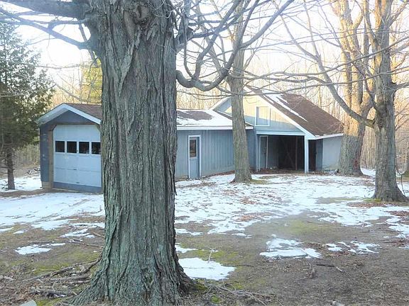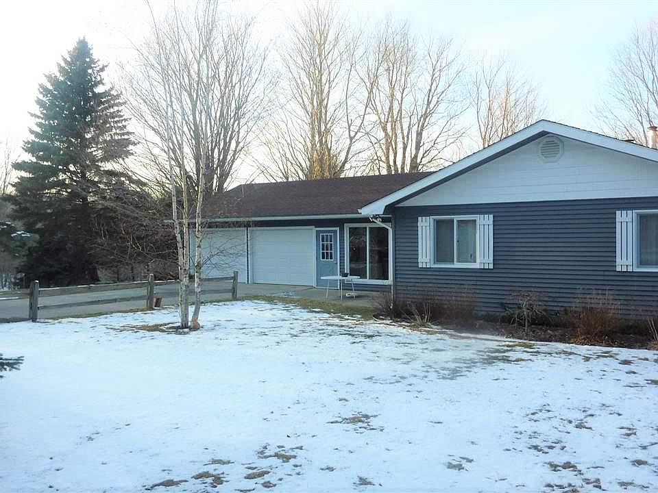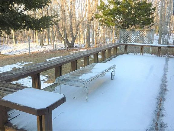 3 Bedroom, 1 bath ranch home with attached 2 car garage with full partially finished basement and a barn which has work and storage space and an extra single car garage, all on a beautiful 10 acre parcel, which could be split for another building site with an easement over the existing driveway. Large front, side and rear yards with surrounding partially wooded property. There is a fireplace in the large living room which leads out to a nice deck at the rear of the home. Lots of privacy at the end of a quiet lane, and only a few minutes into Frankfort, or to the Bellows Beach on Crystal Lake less than a mile from the house.