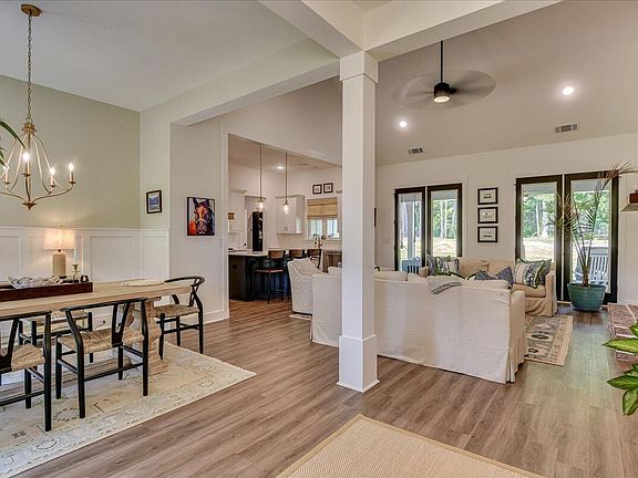 Gorgeous 1.5 story home in Columbia County on 2.71, built by Greenhead Homes is fully fenced with a gated entrance for secure access. The classic farm-style design features a rocking chair front porch. Upon entering the house, you are greeted with an open concept design, featuring a great room with vaulted ceilings. The centerpiece of the space is the brick fireplace that extends all the way up to the ceiling with bookshelves on either side, adorned with wooden beams, adding a rustic and cozy touch to the living space. The gourmet kitchen is a highlight of the home, equipped with white cabinets and stunning quartz countertops. From the kitchen sink, you can enjoy a picturesque view of the beautiful property. The kitchen is furnished with high-quality appliances, including a gas range, and a custom hood vent with wooden accents, adding elegance and functionality to the cooking area. A large walk-in pantry, featuring French doors, provides ample storage space for all your culinary needs. The primary bedroom is designed to be filled with natural light, creating a bright and welcoming ambiance. The ensuite bathroom is equipped with separate vanities, also featuring luxurious quartz countertops. Nearby is a spacious laundry room with utility sink, storage and mud bench. Additionally, the primary bathroom includes a free-standing soaker tub and a custom-tiled shower, providing a spa-like experience with access to the spacious closet. Two additional bedrooms downstairs, each equipped with walk-in closets, and a full bathroom, providing convenience and privacy for occupants and guests. Heading upstairs, you will discover a generously sized bedroom with its own full bathroom and walk-in closet, making it a versatile space that could be used as a guest suite, office, or playroom. The outdoor area is equally impressive, featuring a covered patio where you can relax and enjoy the breathtaking view of the acreage. The property offers ample privacy, making it an ideal space for outdoor gatherings or peaceful relaxation in Harlem, GA.