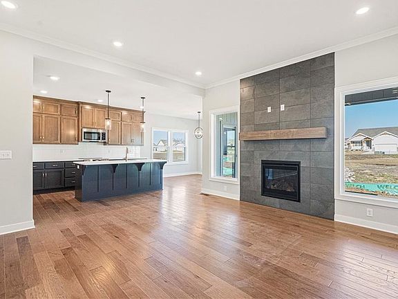 **MODEL - NOT FOR SALE** Welcome to carefree living! This maintenance-provided Cypress reverse 1.5 story offers you the luxury of more leisure time, as lawn care, snow removal, and seasonal irrigation tasks are expertly handled for you. An oversized primary suite ensures quiet privacy, strategically located opposite the other three bedrooms. The main living area seamlessly connects guests and family from every point, boasting an efficient and functional layout with designer touches throughout. Revel in the finer details, including 5-panel doors, shaker-style cabinetry, champagne bronze kitchen fixtures, a floor-to-ceiling tiled fireplace, enameled kitchen cabinetry that extends to the ceiling. Convenience upgrades abound, from wood flooring in the great room and bedroom #2 to top-grade carpet with an extra-thick pad. Additional windows in the rec room and bedroom #2 flood the space with natural light, while a fabulous 8’ wet bar with a beverage fridge adds a touch of luxury. The lower level hosts bedrooms three and four, along with a third full bath & rec room. LED lighting, low-VOC paints, low-E heat-reflecting windows, whole-home humidifier, post-construction duct cleaning, and active radon mitigation system are bonus features. Annual dues of $825 also apply, covering a range of amenities including a competition-sized pool with ADA access, a slide, kiddie pool, reef area, and a shaded deck/lounging area. Additional perks comprise a playground, basketball hoop, big screen/stereo-equipped clubhouse/party room, and a covered lanai with a built-in gas grill. Trash & Recycling are also included. This home offers a serene escape in Hawthorn Ridge, less than 6 minutes to dining, grocery, retail, and services, enjoy the tranquility of a secluded enclave without the typical size, traffic, and noise distractions.
