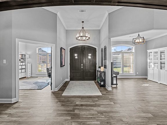 Home Sweet Home! This stunning residence offers 4 spacious bedrooms, 3 full and 2 half baths, making it perfect for families and entertaining guests.Step inside to discover luxurious details throughout, including beautiful built-ins that add character and functionality to the living spaces. Enjoy movie nights in the elegant theater room, and take advantage of the versatile bonus room that can be tailored to your lifestyle. For sports enthusiasts, enjoy your very own basketball court right in your backyard! Safety and security are paramount with a dedicated storm shelter. The gourmet kitchen is a chef's delight, featuring high-end appliances and stunning finishes, along with a private office perfect for remote work or study. Host elegant dinner parties in the formal dining room, and unwind in the screened-in patio, complete with a cozy fireplace for those chilly evenings.As a unique bonus, this home includes a hidden room, adding an element of intrigue and versatility—perfect for a secret office, playroom, or storage! Don’t miss the opportunity to make this exceptional property your own! Agents please see remarks about theater room.