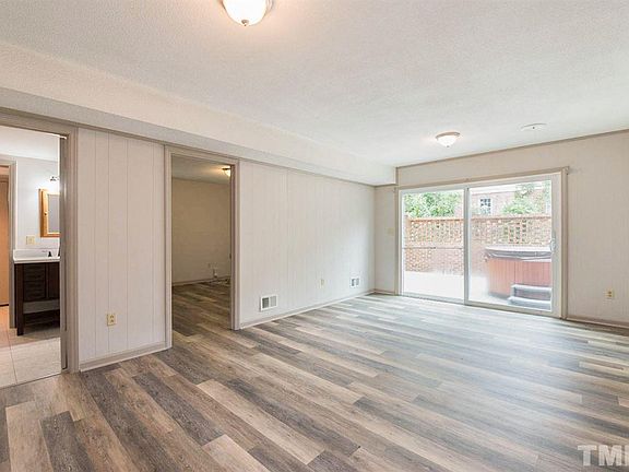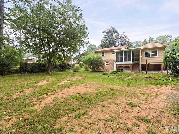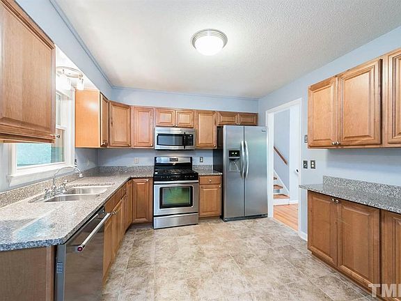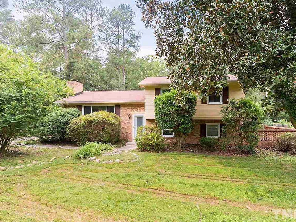 This Chapel Hill two-story home offers hardwood flooring, a fireplace, granite kitchen countertops, stainless steel kitchen appliances, a master bath step-in shower, a patio, a den, and a three-season room.