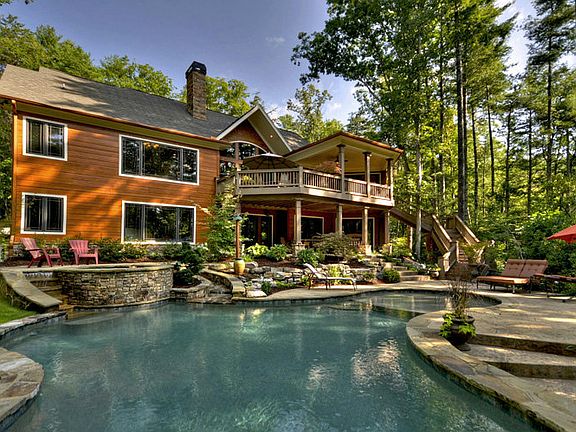 Rustic, elegant 21-acre mountain estate in the heart of Aska Adventure Area. This builder's home features 3 BR on main level, including spacious master suite with 2 walk-in closets. True laundry room on main as well. Stone fireplaces in great room, dining room. Gourmet kitchen includes large island, stainless appliances, butler's pantry, granite countertops, marble farm sink, and double convection oven. Crown molding & custom cabinetry throughout. Salt water pool, with hot tub and waterfall. Pebble deck surface featuring stucco stamped pool decking. Professional landscaping. Large, two-car garage. All decks & railing are composite material. Upgraded, low maintenance stone and shake exterior finishes. Stanley Creek frontage and walking distance to USFS.