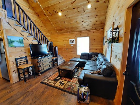 Beautiful 4 season log sided cabin with knotty pine interior, furnished and located in the Hamlet of Wells NY. The "Dakota" cabin, built in 2016, is in excellent condition. Includes one bedroom and a full bathroom on each floor. Washer and dryer located in main bathroom on 1st floor. Open living space with dining area, kitchen and living room furnished with an Adirondack flair. There is a covered porch entrance and a screened room in the rear over- looking the mountains and the Sacandaga river. The back yard is a flat lawn that leads out to a gathering area by the fire pit, then down to a landing area on the river with access to the water. The cabin has a great rental history and can be viewed on VRBO as the "Dakota" cabin. This is a beautiful cabin and a must see!!! Please, Scheduled viewings only. $270,000 The sellers also have the cabin next door listed for $275,000 known as the "Yogi" on VRBO. This cabin has 3 bedrooms and 2 full baths with a handicap ramp and a shed. Both properties are next door to each other with their own driveways, house numbers and deeds. Buy both and have two great income properties or enjoy them both as a family getaway.