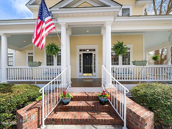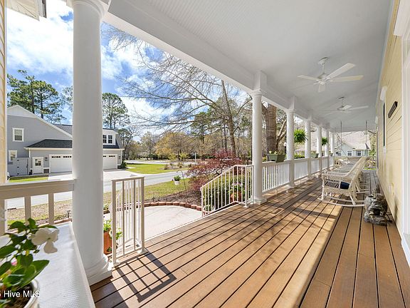 This fabulous low-country style home proudly sits on a high and dry corner home-site in Winding River Plantation. Standing at 3,290 heated square-feet this exceptional residence features 3 bedrooms, 2 full bathrooms, and 2 half bathrooms and exudes classic Southern charm with its idyllic wraparound rocking chair porch, supported by stately columns and accented by a soft blue beadboard ceiling. Impeccably maintained the roof was recently replaced in 2020, new exterior/interior paint, refinished hardwood floors, and new carpet. A paved walkway bordered by mature landscaping invites you to the welcoming front entrance, where timeless elegance meets everyday comfort. Step inside the welcoming foyer to find beautiful real three-quarter inch hardwood flooring that flows seamlessly throughout the main floor. Just off the entry, the formal dining room showcases elegant crown, chair, and baseboard moldings, creating a perfect setting for gatherings. Two sets of French doors offer versatile functionality—one opens to a private home office complete with custom built-in shelving and cabinetry, while the other leads through a convenient butler's pantry into the bright and spacious kitchen. Here, pristine white cabinetry is paired with granite counters and a charming beadboard backsplash, complemented by stainless steel appliances, including a gas range. A peninsula with raised bar seating connects the kitchen to the inviting great room and sunlit breakfast nook, making it ideal for both everyday living and entertaining. The great room features a soaring ceiling with dormer windows that flood the space with natural light. A custom-built media center, complete with glass shelving, storage cabinets, crown molding, and beadboard accents, flanks the gas fireplace, which boasts a granite surround and an elegant custom millwork mantle. French doors extend the living space into a delightful sunroom, where tiled flooring, a beadboard ceiling, and charming views of the cozy backyard