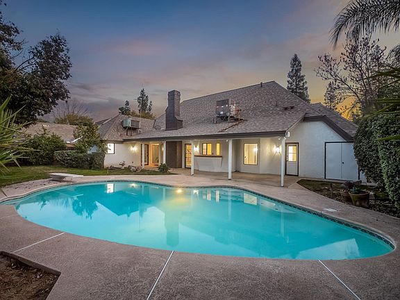Beautiful custom home located north of Herndon just west of Fruit Ave in Clovis Unified School District with a freshly plastered pool. This 4 bedroom, 3 bathroom home is tucked away in a cul-de-sac on a larger lot of over 9,000sf. New laminate flooring flows through the common space from the front family room, formal dining room, to the living room and kitchen. The living room has a high vaulted wood beamed ceiling along with a fireplace and wet bar. The beautiful revamped kitchen is open concept with new quartz kitchen countertops, freshly painted cabinetry and new hardware. The new stainless steel double ovens and dishwasher give it a sharp modern look. There is plenty of counter space and a walk-in pantry. The master bedroom is located downstairs and has a private entrance to the backyard. The master bath has dual sinks and plenty of counter space. A total of 3 bedrooms are located on the main level and the oversized 4th bedroom located upstairs can be used as a secluded office or game room. All bathrooms show nicely with new tile work and new countertops. The 3rd bathroom can be utilized as a pool bathroom with backyard access. The backyard has mature landscaping and would make a great place to entertain with a covered patio. Schedule a private showing for a closer look.