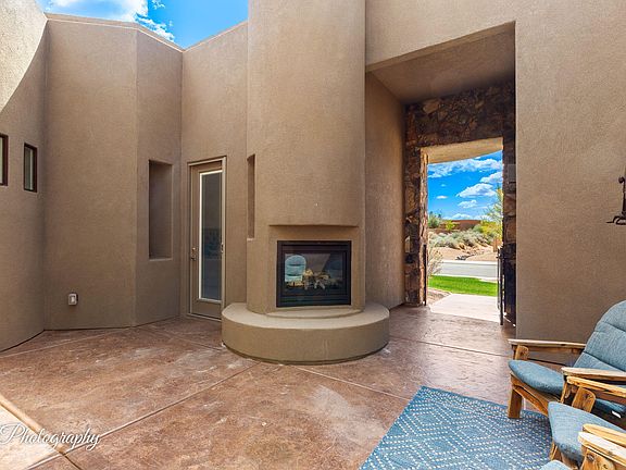 Discover refined desert living in this beautifully designed contemporary Southwest-style home located in the prestigious Ledges community of Southern Utah. This thoughtfully crafted residence features a private front courtyard with a cozy outdoor fireplace — the perfect space to gather and enjoy the region's warm evenings.
