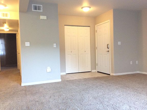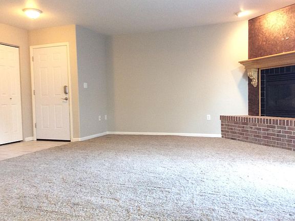 Two bedroom and one bathroom, spacious, modern, energy efficient apartment with 1000 square feet of living space is available now. No stairs to climb for this hard to come by, ground floor apartment!! This unit is bright with natural light and very clean. Enter the apartment and hang your coat inside a full size entryway closet. The living room, dining room, and kitchen is an open concept area with tile flooring in kitchen. Snuggle up next to a gas fireplace in the living room on chilly nights. Both bedrooms have spacious closets. Ceiling fan in master bedroom. Full size washer dryer hookups are available inside the unit tucked away inside a hallway closet. Large bathroom is tiled and contains a shower with a newly updated vanity and mirror. HVAC system/gas. Private covered patio and fenced yard. Two car garage. Complex is located at the end of a street on a cul-de-sac. $1500rent includes paid water, trash, sewage, yard maintenance, and assigned parking for two vehicles. Equal Housing Opportunity.