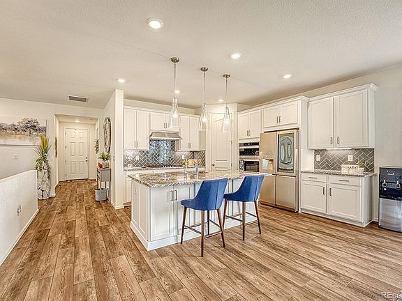 Welcome home! This 3 bedroom/2 bath *like-new* ranch home situated on 1/3 of an acre is what you have been searching for. Perfect for entertaining, you will love the open layout. The kitchen features an oversized island, granite countertops, and GE stainless steel appliances. The beautifully tiled fireplace in the living room will keep you cozy in the winter. An office with French doors makes it easy to work from home. Low maintenance Vinyl plank flooring throughout the main living area, bathrooms, kitchen and laundry room. The spacious primary suite has a large walk-in closet, as well as a great sized bathroom with a dual vanity sink. Enjoy your private oasis in the huge backyard that backs to open space. Located near E-470 commuting to work (should you need to leave your home office) will be easy. Future middle school to be built just 2 blocks away. Instant equity with this beautiful home as it recently appraised for $740,000!