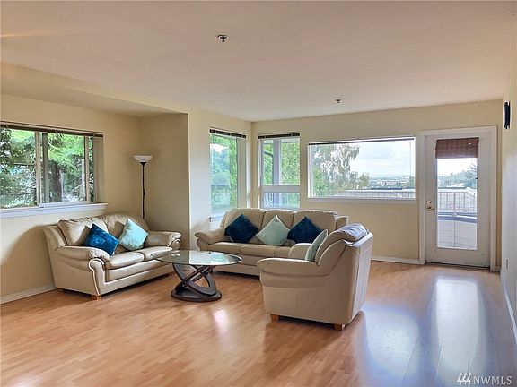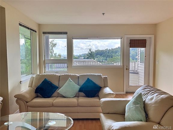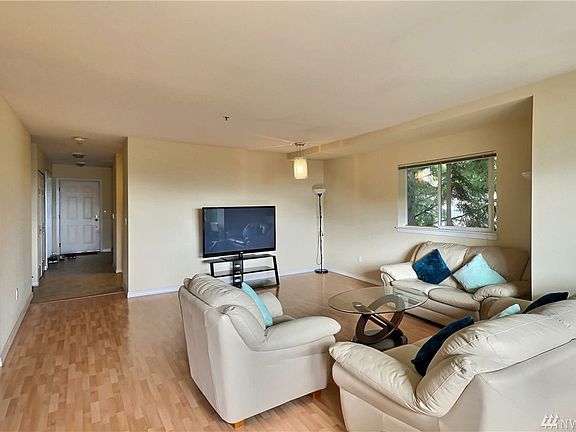 End Unit. Contemporary open and spacious floor plan. This 2 bedroom 1.75 bath condo features a pergo hardwood flooring throughout. Big kitchen with lots of cabinets. Living room opens to the deck with beautiful view of the mountains. Large master bedroom with master bath. 2 Pkg spaces. Extra storage. Convenient location to Southcenter Mall and restaurants. Easy access to I-5 or I-405.