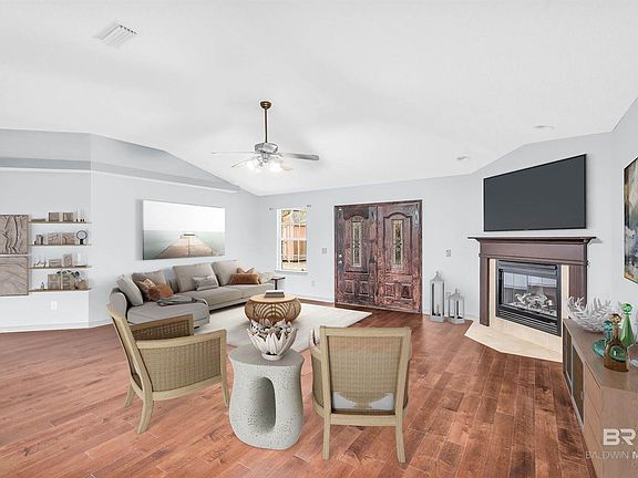 Move-In Ready Gem in Foley with a brand-new Fortified Roof! This stunning 4BR/2BA brick home is waiting for its new owners! Meticulously maintained and boasting No active HOA, this single-level haven offers the perfect blend of style and comfort. Inside, you'll discover: Open-Concept Living: Soaring ceilings and elegant hardwood floors create an inviting atmosphere for both relaxation and entertaining. Gourmet Kitchen: This well-appointed kitchen features granite countertops, a smooth cooktop, a generous pantry, and a breakfast bar – perfect for culinary creations. Master Suite Oasis: Retreat to the spacious master suite, complete with a spa-like ensuite featuring dual sinks, granite countertops, a separate shower, a garden tub, and a private water closet. Outdoor Paradise: Enjoy the serene backyard on the screened porch – ideal for summer barbecues and relaxing evenings. Peace of Mind: Tankless water heater, fireplace, sprinkler system, gutters, fresh paint, NEW alarm system, an UNDERGROUND STORM SHELTER, and an 8x12 storage shed for all your outdoor gear. Location, Location, Location: Just 14 miles to the beach and 1 block from the Foley Beach Express! Don't miss out on this incredible opportunity! Schedule your private showing today and get ready to call this amazing home your own. Buyer to verify all information during due diligence.