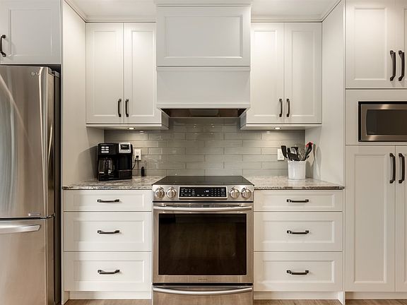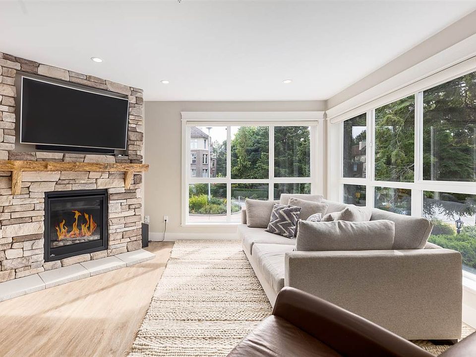 EXQUISITE RESIDENCE IN SOUGHT AFTER STERLING PLACE! No detail has been spared in this designer suite. Over 1300SF COMPLETELY RENOVATED top to bottom featuring: gorgeous light engineered hardwood flooring & plush carpets in the bedrooms. CHEFS DREAM KITCHEN awaits you with plenty of storage, granite counters and SS appliances. Entertain family & friends here easily! Open dining room transitions into the living room highlighting a custom stone & reclaimed wood mantle + new gas fireplace. Master Bedroom features walk-in closet & ensuite! Enjoy lush garden views from the oversized windows&abundance of natural light shining in. BONUS spacious laundry room! Situated on quiet side of the building. Carefully designed for comfort,you don't want to miss this one of a kind home!