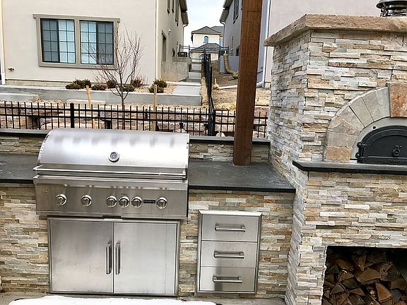 3,577 Sq. Ft. plus 1,739 Sq. Ft. in-ground finished basement with 9' tall walls. Quiet, coveted cul-de-sac location. Distinctive stacked-stone and real stucco Euro-contemporary Spanish style. Exterior with Moab red barrel-tile roof. Dramatic bridge overlooks 2-story windows and main floor great room. 2nd floor includes 3 bedrooms (inclusive of master suite), loft/office, and laundry room. Each bedroom contains full ensuite. Master bedroom is massive with two walk in closets, 6ft Koehler tub and large tiled shower. The main floor is open concept from kitchen to grand room with 2 story high ceilings in the grand room. There is an adjoining room off the grand room that houses baby grand piano. Acoustics are incredible. The gourmet kitchen has an oversized island that seats 8 comfortably, plus a dining nook. 15ft sliding doors open up the grand room to an outside entertainment area that includes a custom featured gas outdoor fire place, raised garden with benches, a fire pit, and gourmet kitchen with bar. Kitchen includes hibachi grill, gas grill, custom pizza oven, and smoker. The rest of the main floor includes guest bedroom with ensuite, an office, half bath, and media closet. The finished basement is spectacular with accents of barn wood, barn doors, brick, steel, and cement. Basement has a kitchen with 2 bar areas, tv room and play room, 2 guest rooms with ensuites, laundry room, storage room, and art studio with custom cement countertops.