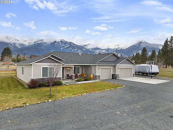 Introducing a stunning 4-bed, 2.5-bath custom home nestled on 5 acres of picturesque land with breathtaking mountain views. This exquisite property boasts an open-concept layout, ideal for modern living, along with a spacious 3-car garage. The home features large kitchen with entertaining bar, granite counters & stainless steel appliances, along with separate prep kitchen/wine & coffee bar space. Enjoy the tranquil ambiance with a seasonal creek and soothing water feature, all within a fully fenced perimeter for privacy and security. Embrace sustainable living with your own orchard and chicken coop, completing this idyllic country retreat. Welcome to your dream home where luxury meets nature's beauty.