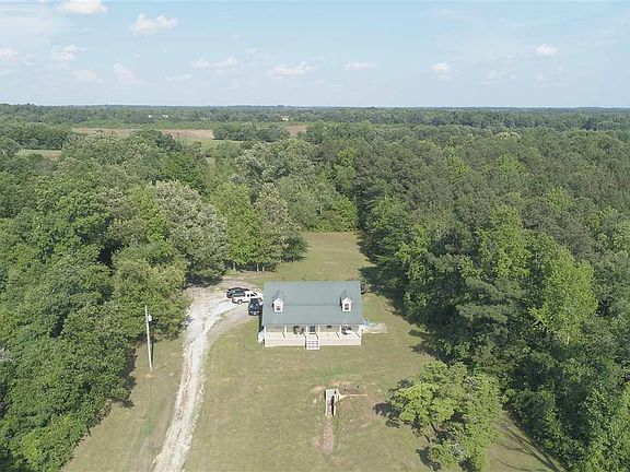 Tranquil setting for this beautiful 2 story home sitting on 6.3 acres. Stroll up the winding drive way and enter your own private oasis. The home features a modern luxury rustic cabin feel, beautiful knotty pine throughout. Soaring ceilings that reach 20' and a sky bridge that carries you from room to room. Front porch enjoys magnificent sunsets. Newly remodeled kitchen and utility/mud room with custom cabinetry and all new appliances. New luxury vinyl plank flooring downstairs and carpet in upstairs bedrooms. Detached workshop and garage for him and a she shed/craft room for her. A place for everybody! Very open floor plan. Master bedroom has freshly remodeled master bath with unique soaking tub, separate custom tile shower, and a custom walk in closet. This home has 4 bedrooms and every bedroom has a full bath, plenty of room for that growing family. Bring the kids and bring the pets there will be plenty for everyone to do as you enjoy the gently rolling 6.3 acres. Underground storm shelter. Only 1 mile from Lucy's Branch, fishing and boat launch.