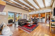 - Bar, Beamed Ceilings, Ceiling Fan(s), Central Vac-Plumbed, Central Vacuum, Eat-in Kitchen, Granite Counters, Kit/Din Combo, Kitchen Island, Liv/Din Combo, Live on One Level, Master Downstairs, High Ceilings, Wired for Sound, Walk-In Closet(s)