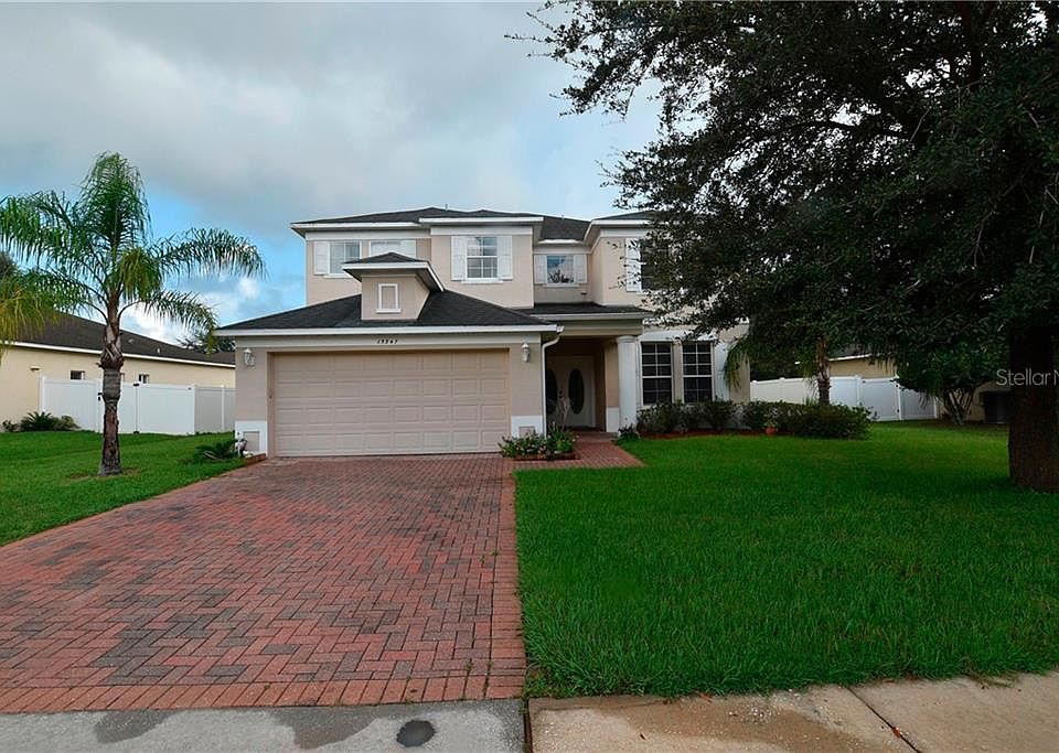 15347 Groose Point is very spacious and features a fantastic floor plan in the popular and beautiful Tradd's Landing subdivision. With room to roam, this clean home will not disappoint any buyer. The elegant double door leads you to a living-dining room combo on the right and from there to a spacious kitchen with eating space and breakfast bar. From there a large family room gives way to a full bathroom and a convenient downstairs' bedroom. Walk the stairway up to the second floor, and you will be surprised by a large bonus room. The master bedroom and master bathroom are also big. But wait until you see the master closet for a loud wow! Two additional good-sized rooms, a third bathroom and a well-equipped laundry room complete the upstairs' picture. The garage comes with an automatic door opener, and the driveway comes with brick pavers. Tradd's Landing offers a community pool and a playground. Location is outstanding. The best of Central Florida is minutes away. Many other attractions are within a reasonable driving time. Plus schools, shopping, and dining can be reached within minutes. 15437 Groose Point is the opportunity knocking at your door. Come and see by yourself.