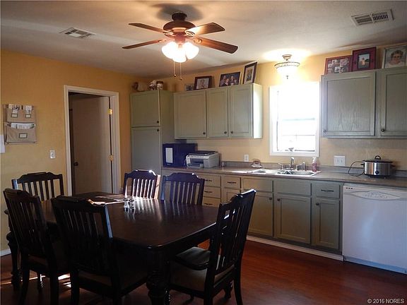 10 acres with cute 4 bed/ 2 bath home. Open floor plan with laminate flooring and carpet. 30' X 40' metal shop building with electric and water. Property is fenced/cross fenced with mature trees and wet weather pond. MORRIS SCHOOL DISTRICT - paved road