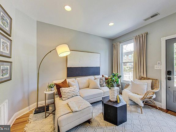 Stylish city living in Hill East! Cross the paved patio to the front door that floods this charmer with light. Step into the cheerful living room connected to the kitchen by a short hallway with a convenient powder room, utility closet, and extra storage. Host happy gatherings in the bright eat-in kitchen where a large glass sliding door opens onto a delightful, private back patio that invites indoor/outdoor living. On the second floor, find 2 ample bedrooms (one currently used as a study, but could be another double, nursery, or playroom). A full bathroom is situated between the bedrooms with a washer/dryer. Ascend and escape to the third floor's primary suite with a lovely dormer window and custom closets. The spacious, spa-like en suite will wow you with 2 wide vanities, a separate tub, and shower. All of this in a wonderful Hill East location, steps from the metro and short walks to Lincoln Park, Payne Elementary, The Roost, Safeway, F45, and Eastern Market.