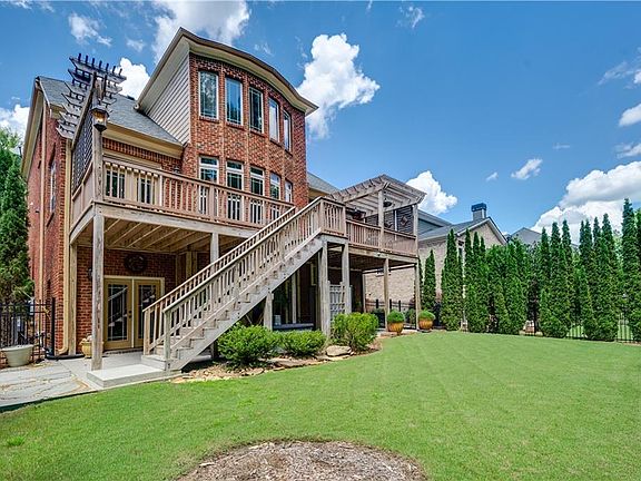 GORGEOUS INSIDE AND OUT, TOP QUALITY CONSTRUCTION! 4 Side Brick Beauty with Master on Main, master bath has double vanity, jetted tub and large walk in shower, walk in closet with built ins. Open dream kitchen with white glazed cabinets, stainless steel appliances, double oven, microwave, refrigerator, and granite counters overlooking sunny breakfast room and 2 story fireside family room with built ins, coffered ceilings and radius windows. Separate dining room with butler pantry. Upstairs boasts 4 bedrooms with walk in closets and 2 full baths. Full daylight basement stubbed for bath. Walk out to your oversized Trex deck from the breakfast room and look out to your private Shangri-la fenced backyard. Go beyond the fence to a garden area, stone patio and fire pit and relax by the babbling brook. Extras include laundry room with sink + washer/dryer, 10 ceilings, hardwood floors, plantation shutters, covered front porch, and oversized covered patio. HOA covers yard maintenance! Convenient location just outside of city limits of Cumming and minutes to the new city center!