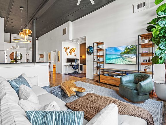 Beautifully updated 2-bedroom, 2-bath condo in the sought-after Caraleigh Mills community in downtown Raleigh. This stunning unit blends modern style with historic charm, featuring soaring ceilings, exposed brick, oversized arched windows, and an open-concept kitchen. The spacious primary suite offers a serene retreat with warm wood floors and a spa-like bathroom. Washer/Dryer are included. Building amenities include a private gym, EV chargers, a dog park, a swimming pool, and AT&T Fiber Internet. Walking distance to Trophy Brewing's taphouse on Maywood Ave., the NC State Farmer's Market, and Riparian Provision Company. Available around May 1st, 2025 Furnished option available for an additional fee. An optional storage unit is also available for an additional fee.