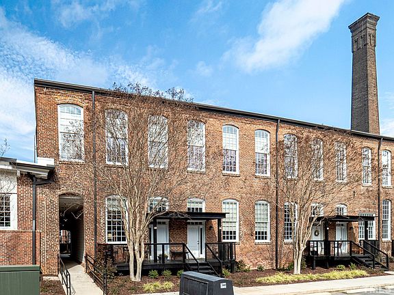 Caraleigh Mills, 1892 textile mill converted to condos in 2003 is on National Register of Historic Bldgs. Dramatic 2-story townhome from expanded front porch into sun drenched LR into large kitchen/dining area, to patio & stunning courtyard. Exposed brick walls with 16' ceilings and soaring windows up and down. Two oversized bedrms, orig maple flrs. High speed AT&T Fiber internet, pool, dog park, gym, game rm, garden, EV charging stations. 50% historic tax credit. See SPECIAL FEATURES SHEET in Agent Docs.
