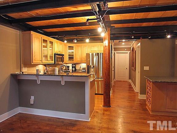 This is one of the largest condo's in the Historic Caraleigh Mills, located just outside of Downtown Raleigh. An Upscale condo offering a variety of amenities. Featuring 16-20ft ceilings made of exposed wide plank heart of pine, original to the building. The floors are original hardwoods and the condo features oversized windows. Gorgeous exposed brick walls and granite counter tops. Stunning oversized metal doors that lead into the master bedroom. This property is one of a kind.