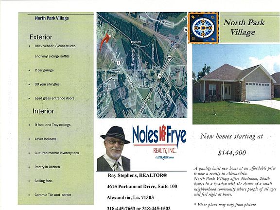 Approximately 1430 heated/2238 total sq.ft. 3 bedroom, 2 bath home with 2 car attached garage. 25 homesites available 6 home plans available Neighborhood Description Just off the banks of the nearby Red River is a little place where 'neighbor' is more than just a word. North Park Village is a small community where you can come relax after a hard day of work. Where the young and old blend in a community that shares as much diversity as it does commonality. The homes here are built with pride of quality along with well planned function of space in mind where quality blends with affordability. Come see what we have for you.